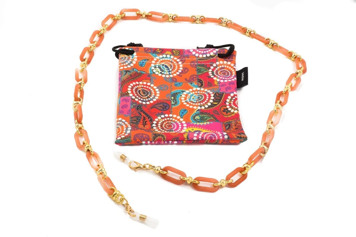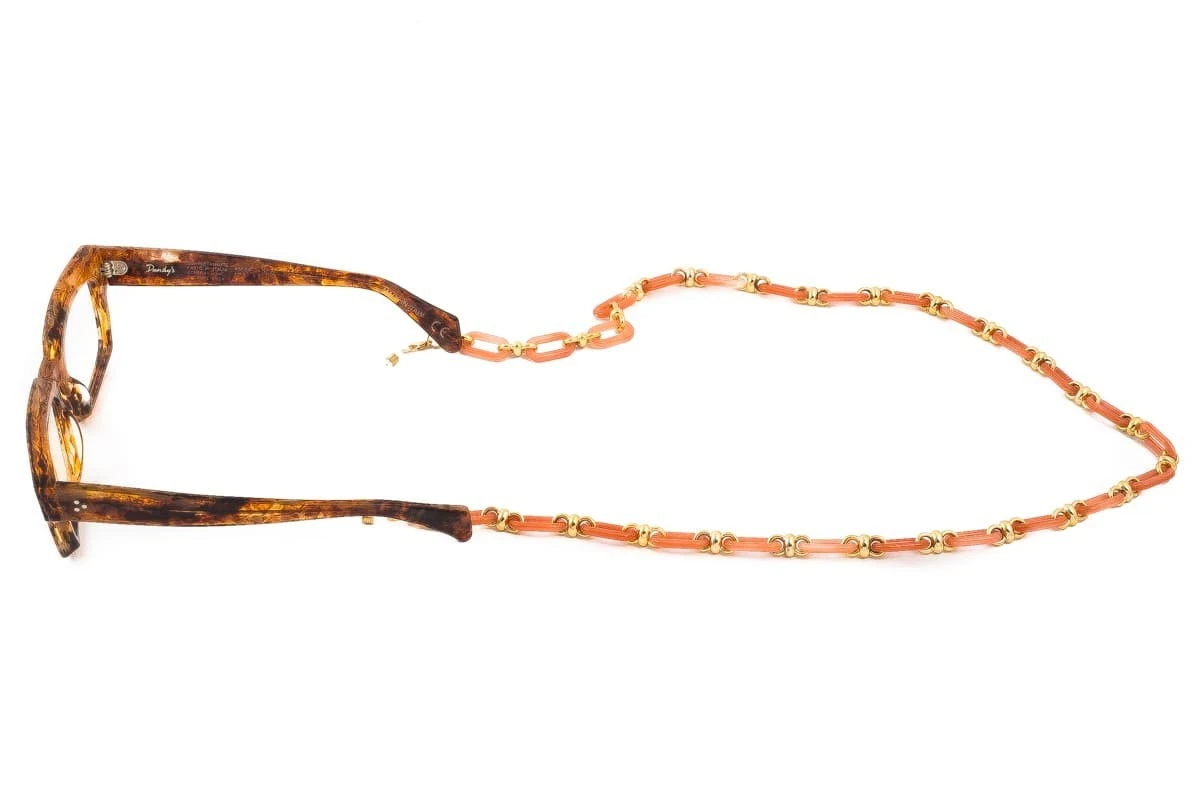 Catenella per occhiali AIRPORT in colore Rosso Oro. Una catenella per occhiali in acetato molto modaiola realizzata dal brand Airport, equipaggiata con un apposito astuccio in microfibra. Ideale per chi vuole indossare il proprio occhiale con stile.