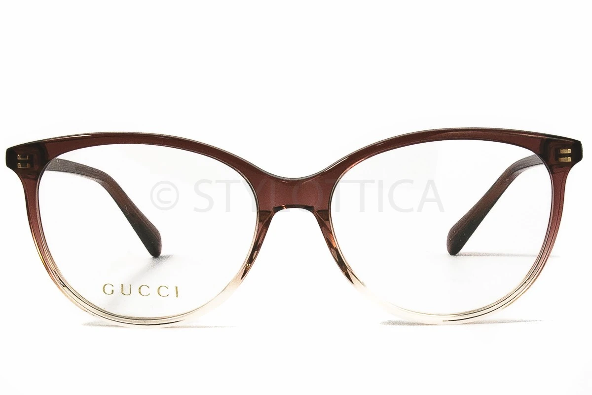 Occhiali da vista Rosa sfumato trasparente. Una montatura classica realizzata con colori eleganti e curata in ogni minimo dettaglio. Gucci crea occhiali particolari e fini allo stesso tempo e rappresenta per il mondo dell’ottica un grande punto di riferimento soprattutto per la cura dei dettagli. Questa montatura arriva con un packaging molto raffinato.