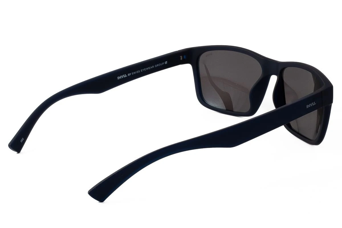 Occhiali da sole Uomo INVU in Plastica Riciclata Recycled con lenti di colore Blu specchio Il colore di questi occhiali carismatici, versatili ed essenziali si adatta ad ogni stile e li rende intramontabili. La forma classica di questa montatura è molto versatile e si addice a tutte le forme di viso. La lenti a specchio sono riflettenti, progettate per ridurre la quantità di luce dannosa per gli occhi.Inoltre, la resistenza dei materiali ecosostenibili e gli accorgimenti costruttivi garantiscono un’ottima funzionalità dell’occhiale ed una lunga durata nel tempo, contribuendo a salvaguardare l’ambiente. Invu by Swiss Eyewear Group realizza montature molto modaiole, con filtri polarizzati e protezione UV, l’ottimo prezzo li rende ideali per chi vuole un occhiale alla moda senza spendere troppo.