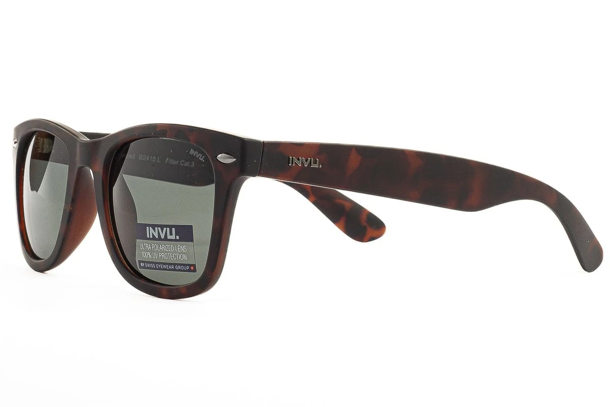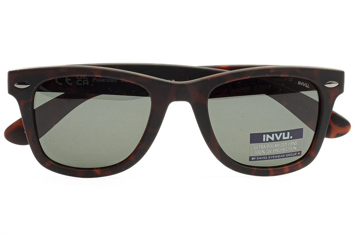 Occhiali da sole INVU B2415 Havana stile wayfarer con lenti di colore Grigio Verde polarized