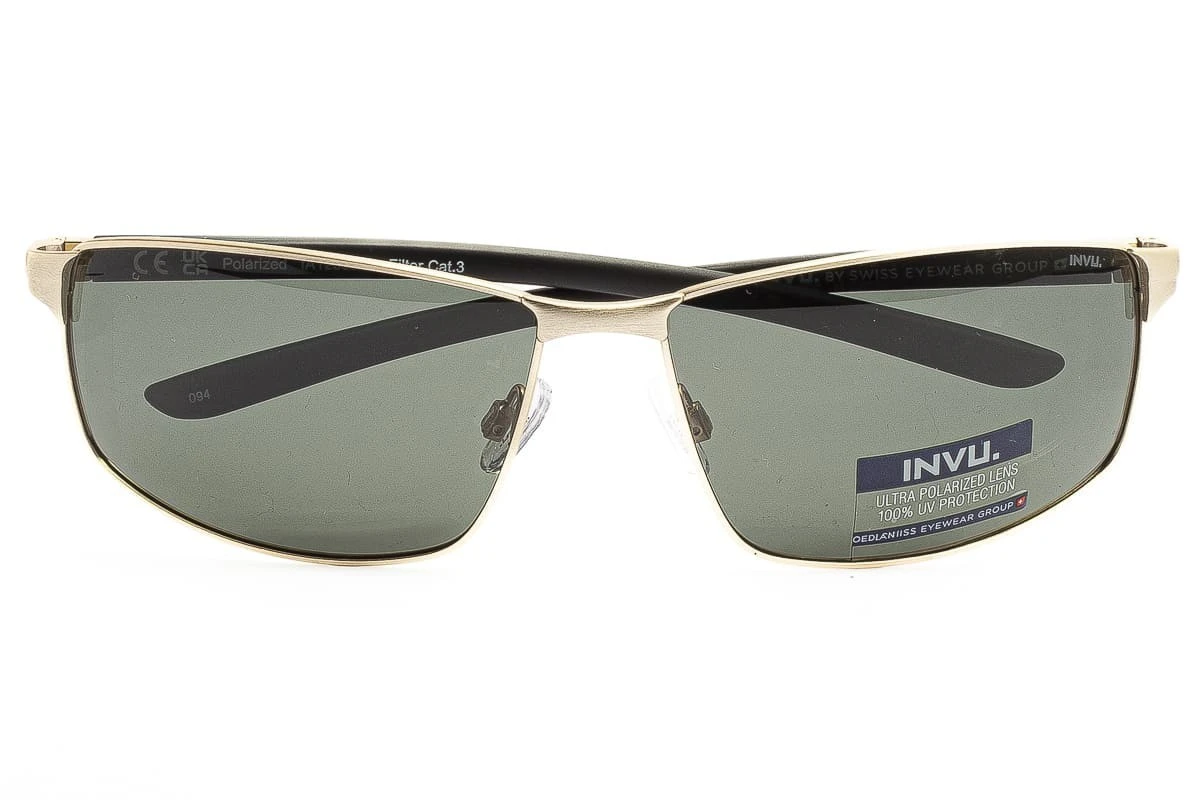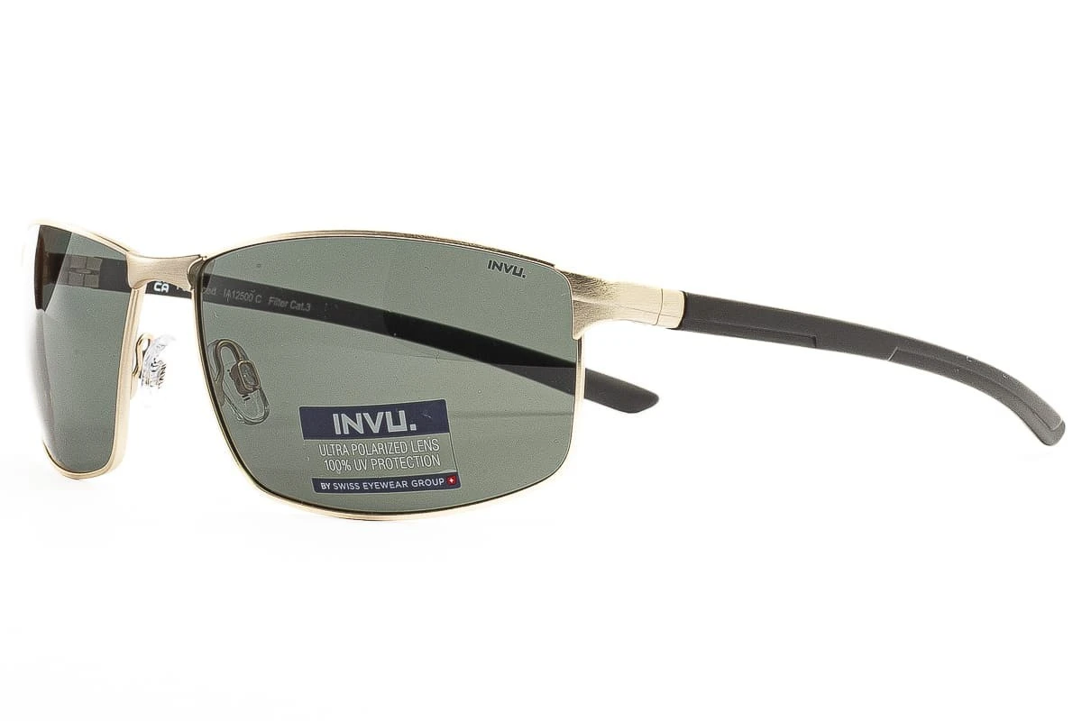 Occhiali da sole INVU IA12500 Oro nero sport in metallo con lenti di colore Grigio Verde polarized