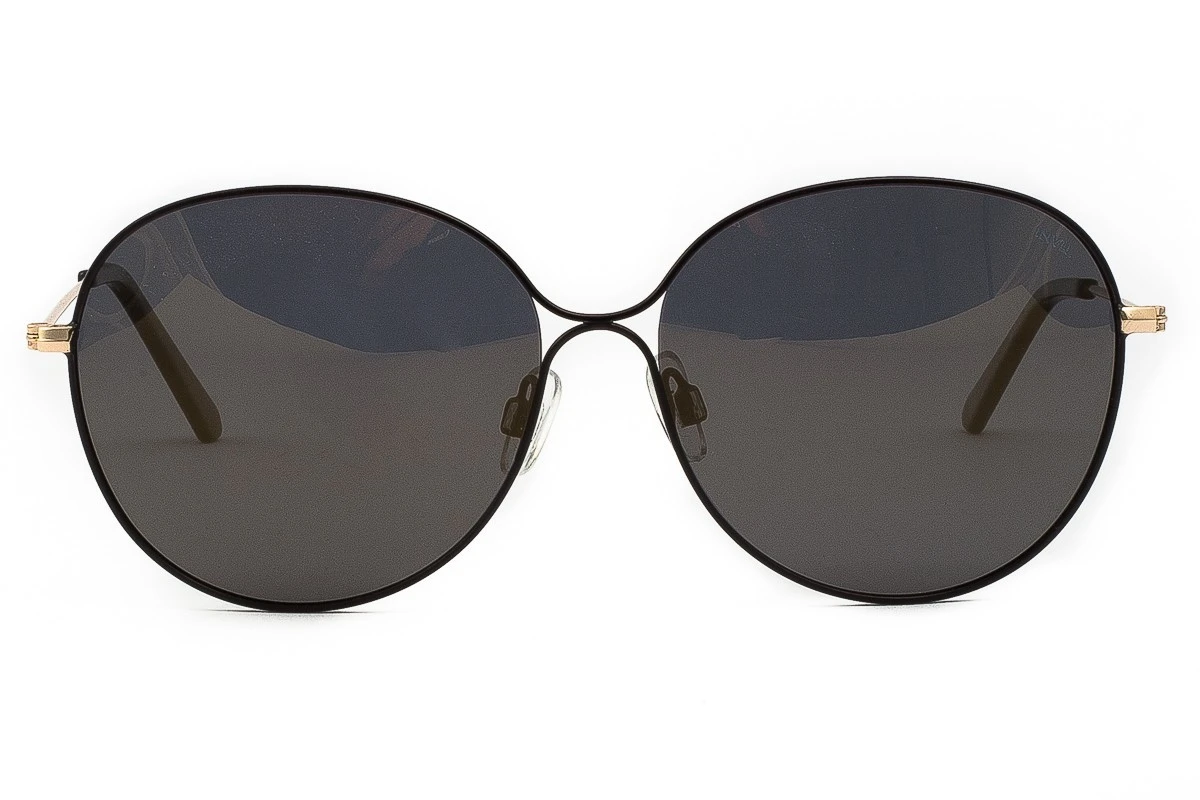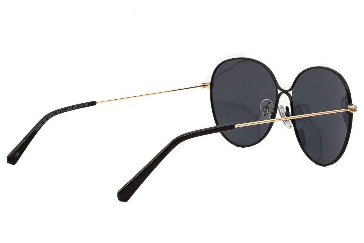 Occhiali da sole Donna INVU rotondi in Metallo Nero protezione UV con lenti Oro flash. Le lenti Flash sono una versione di lente con specchiatura più leggera, non totalmente coprente dall’esterno. Invu by Swiss Eyewear Group realizza montature molto modaiole, con filtri polarizzati e protezione UV, l’ottimo prezzo li rende ideali per chi vuole un occhiale alla moda senza spendere troppo.