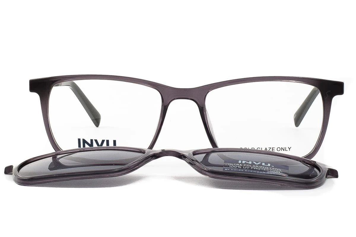 Occhiali da vista con clip sole per bambini Junior INVU in Plastica con lenti di colore Grigio Polarized. Il colore di questi occhiali, dedicati gli amanti dell’effetto naturale, li rende versatili e adatti per essere indossati su tutte le carnagioni, con qualsiasi outfit. La forma della montatura dona particolarmente ai visi rotondi e ovali, che ne ammorbidiscono la linea decisa. Le lenti Polarizzate di questi occhiali migliorano la visibilità dei dettagli ottimizzando il contrasto e riducendo drasticamente i disturbi dovuti al riverbero della luce sulle superfici riflettenti come neve e acqua.Questa montatura, pensata per i più piccoli, rispetta tutti gli standard qualitativi e di sicurezza, oltre ad avere una calzabilità Junior. Invu by Swiss Eyewear Group realizza montature molto leggere e con forme classiche. Questa montatura è equipaggiata con una clip magnetica che permette di trasformare l’occhiale da vista in occhiale da sole in qualsiasi momento. Ideale per chi ricerca una montatura semplice e funzionale senza spendere troppo.