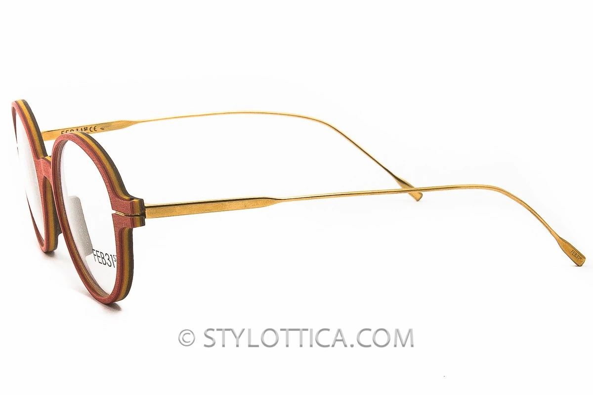 Occhiali da vista Unisex FEB 31st rotondi in Legno e Beta-Titanio Rosso Oro. Gli strati di diverso colore creano un effetto grintoso. Aste sottili e maneggevoli oro. Le montature FEB 31st sono realizzate in legno utilizzando tecniche di lavorazione all’avanguardia che le rende resistenti, sottili e leggere. Gli abbinamenti di colori del legno e la cura per dettagli rendono queste montature completamente innovative e confortevoli. Le proprietà del Beta Titanio, utilizzato per le parti di questo occhiale più soggette ad usura, sono l’elasticità e la resistenza: in caso di pressioni, flessioni o torsioni, il Beta Titanio torna alla forma originaria. Inoltre, è anallergico, in quanto non contiene Nickel.
