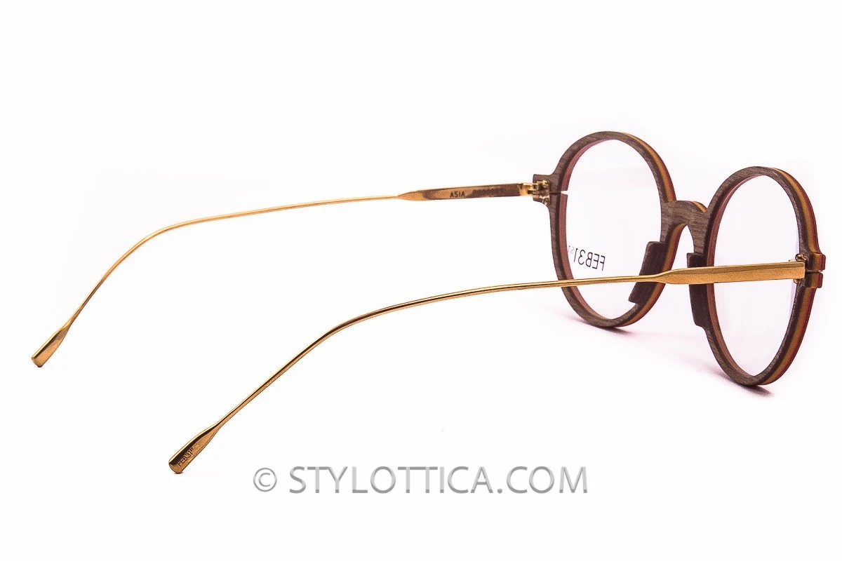 Occhiali da vista FEB 31st Asia rotondi, colore Rosso Oro, in Legno e Beta-Titanio