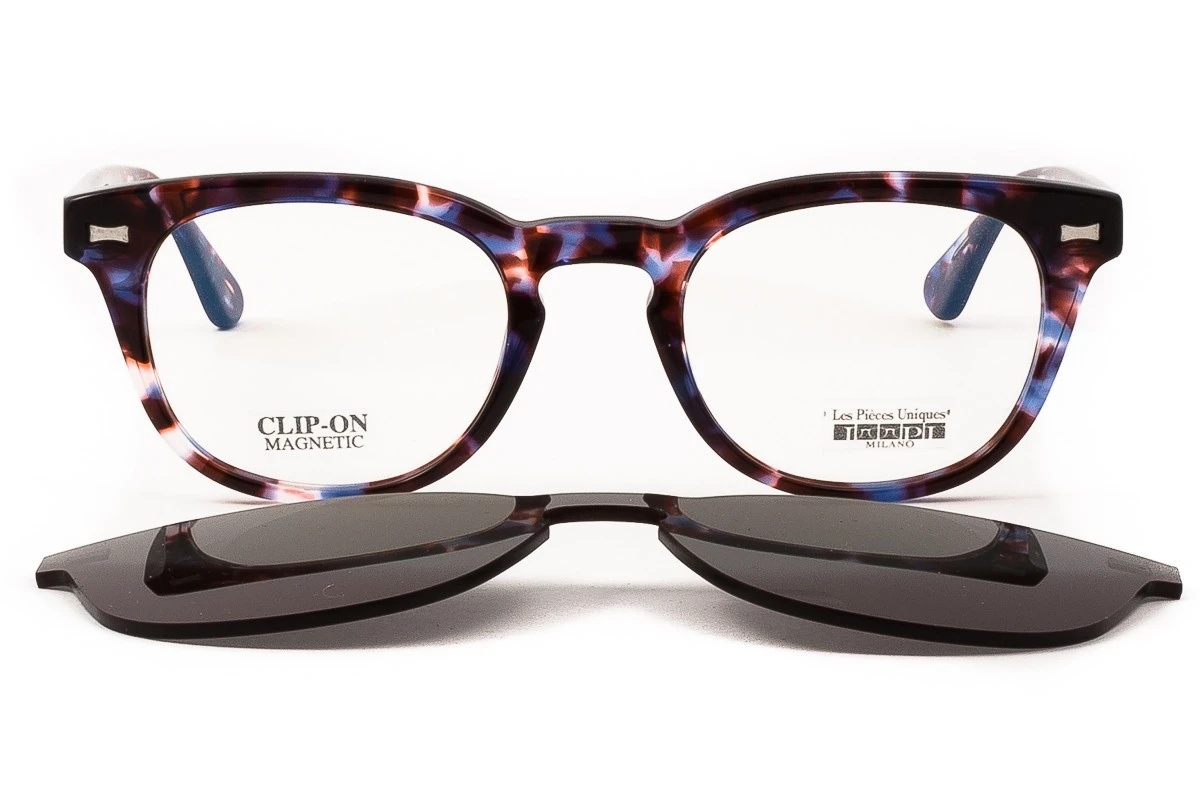 Les pièces uniques è un’azienda italiana che realizza montature non convenzionali. Le lastre colorate e la cura per i dettagli rendono queste montature molto riconoscibili. Ideali per chi non vuole passare inosservato. Questa montatura è equipaggiata con un a clip-on magnetica a taglio laser. Acetato
